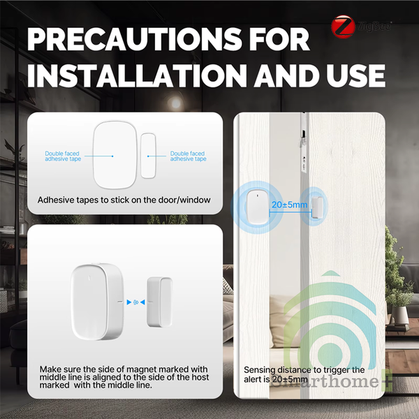 Cảm biến mở cửa giúp bạn chống trộm an toàn và hiệu quả, kết hợp với bộ điều khiển trung tâm Zigbee Tuya THA1, , THA5 Mini, THA5v2, THA6, THA7, THA8 hay THA11 khi có người mở cửa cảm biến sẽ tự động thông báo vào điện thoại của bạn.